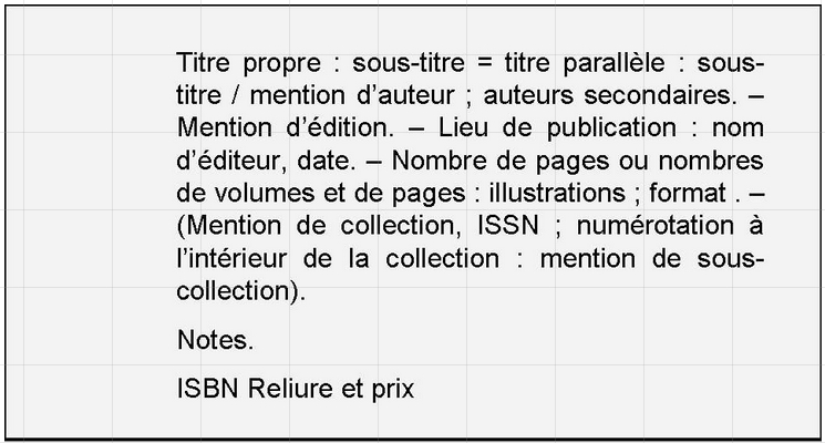 Pour aller plus loin, on peut consulter le cours de Mediadix qui présente les principales caractéristiques du catalogage ISBD des monographies et des périodiques ainsi que les bases du catalogage en format UNIMARC (aide-mémoire en pdf), format “officiel” en France.